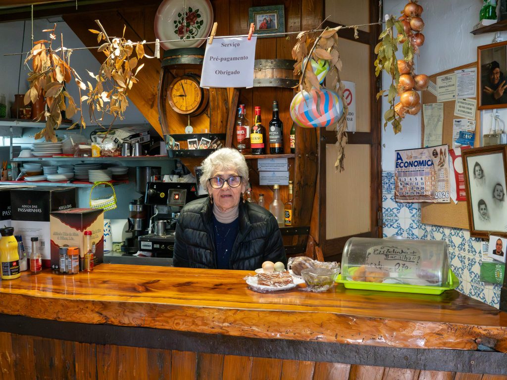 Vai-se trabalhando. E, no verão, há muitos estrangeiros, que gostam da casa, porque é diferente, é tradicional. E eu aqui vou cozinhando uns petiscos e servindo umas bebidas. Mas, agora, vou fazendo pouca coisa para comer, porque já não posso fazer muito.